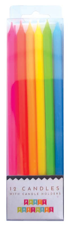 Neon Rainbow Gradient 12 Candle Set with candle holders for perfect placement. Size: 3.5” tall