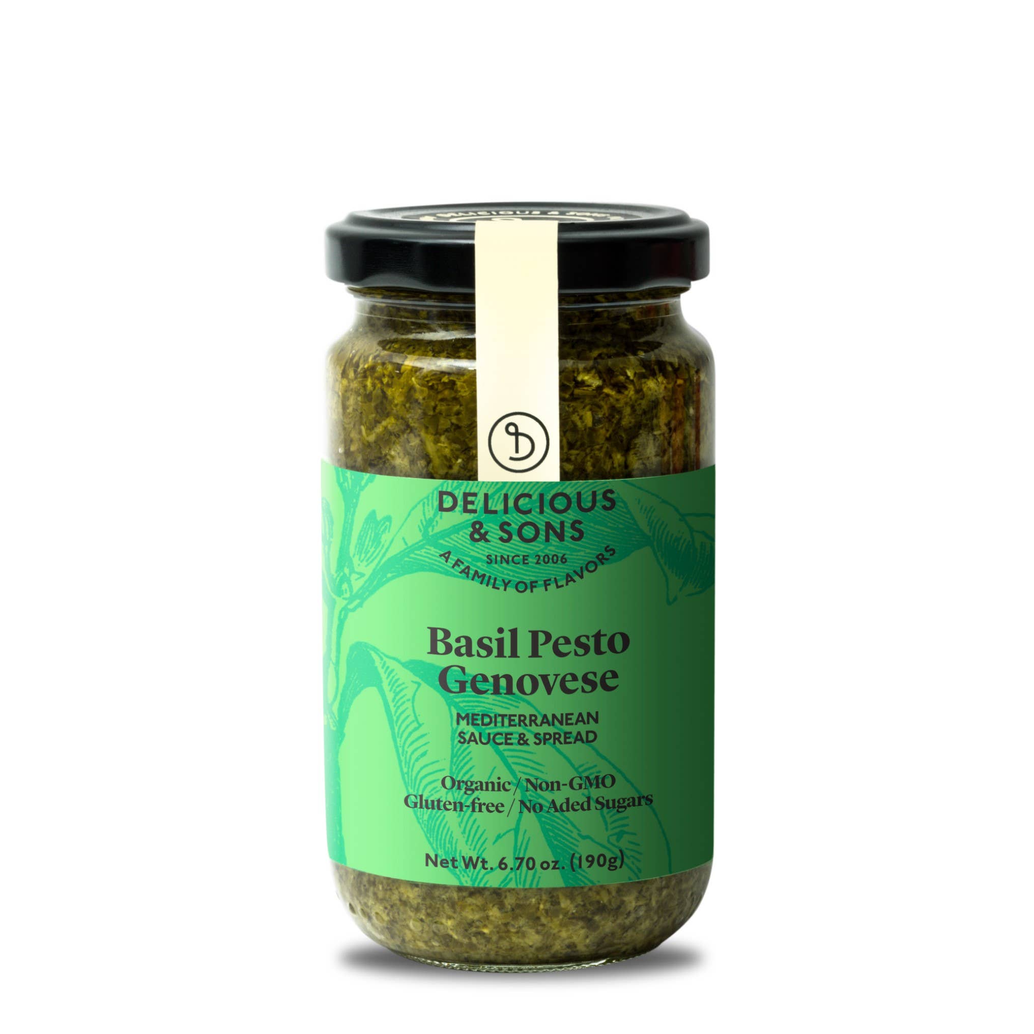 We make this classic pesto sauce following the traditional recipe with authentic organic Italian basil and certified Parmesan cheese. Pesto genovese, known simply as “green pesto”, combines well with an infinite number of dishes such as pasta, sandwiches, vegetables, salads, as a dip, and with meats, chicken, and fish. And most simply, enjoyed with a piece of crusty bread. Totally natural, certified organic, non-GMO and gluten-free. Also does not contain sugar and egg. Size: 6.70 oz/190g.