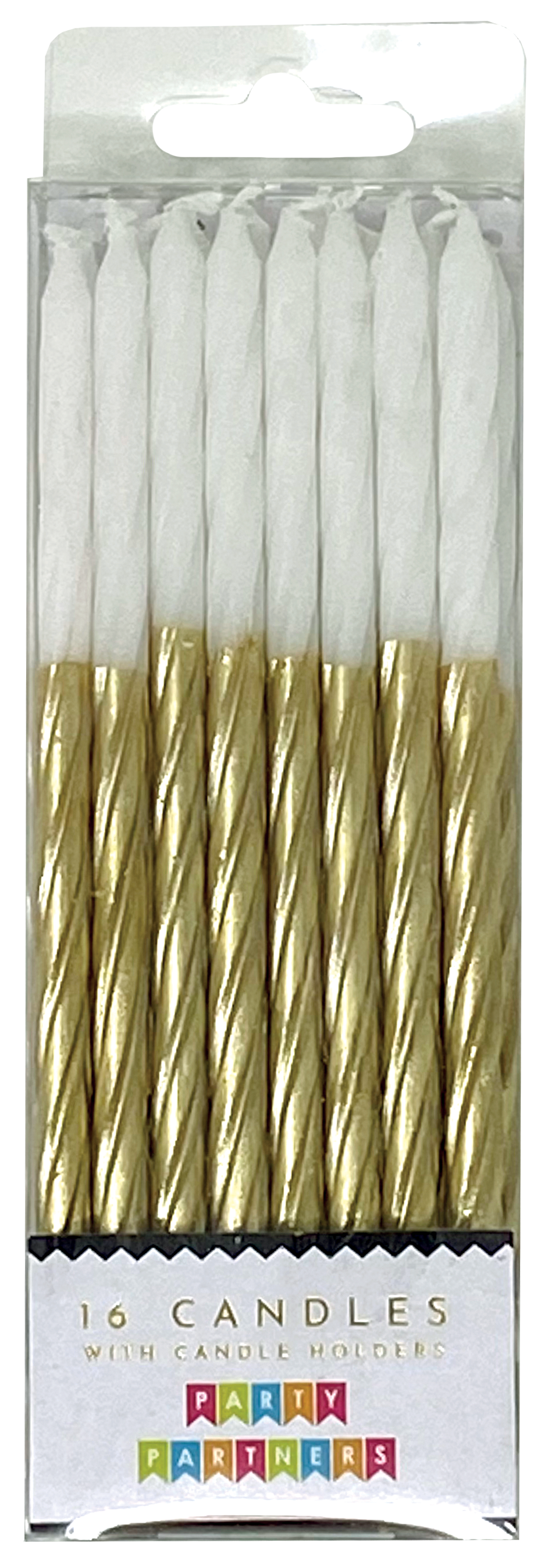 Party Partners - Gold Spiral Metallic 16 Candle Set