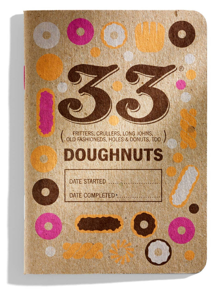 33 Doughnuts is a doughnut tasting journal that provides a fun way to record your pastry particulars in a small, convenient notebook format. Based on the format of other "33" books, this journal does away with the flavor wheel in favor of an "Eater's Rendering" area that allows you to record the visual attributes of the doughnuts you sample. Think of it as a super sweet sketchbook.